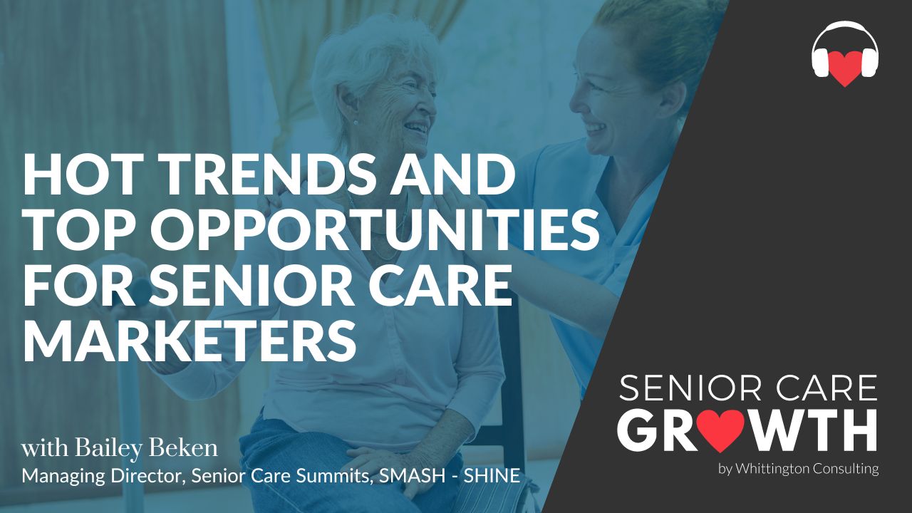 On this episode of the Senior Care Growth Show, Bailey Beeken, Managing Director of Senior Care Summits (SMASH – SHINE), shares her insights on what trends are impacting the senior living industry and discusses top opportunities for marketing and sales professionals.