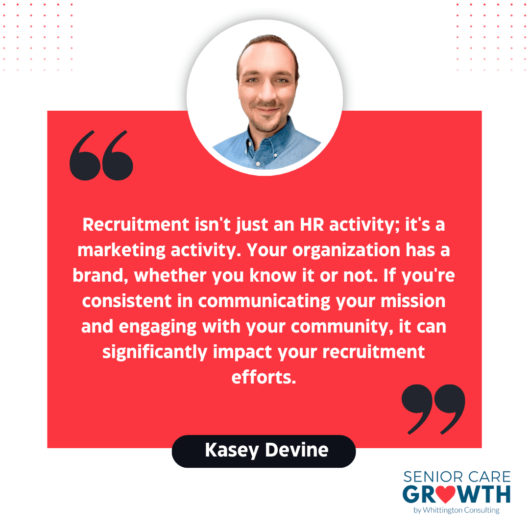 Recruitment isn’t just an HR function—it’s a critical part of your marketing strategy. “Recruitment isn’t just an HR activity; it’s a marketing activity. Your organization has a brand, whether you know it or not. If you’re consistent in communicating your mission and engaging with your community, it can significantly impact your recruitment efforts,” mentioned Kasey.